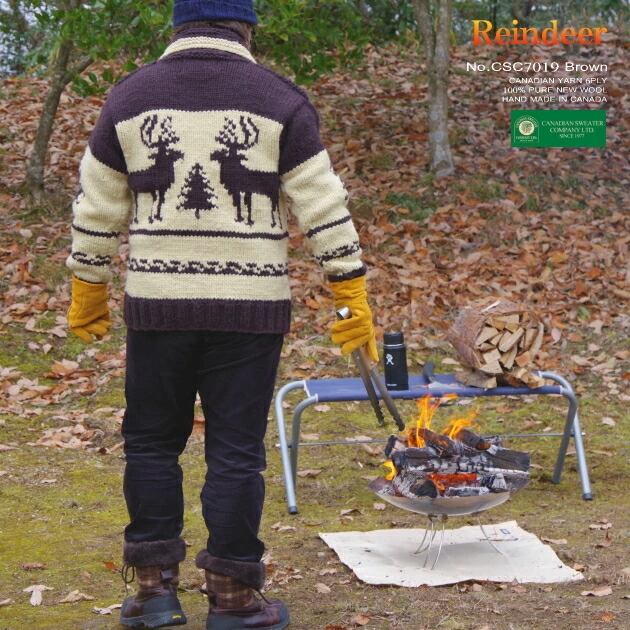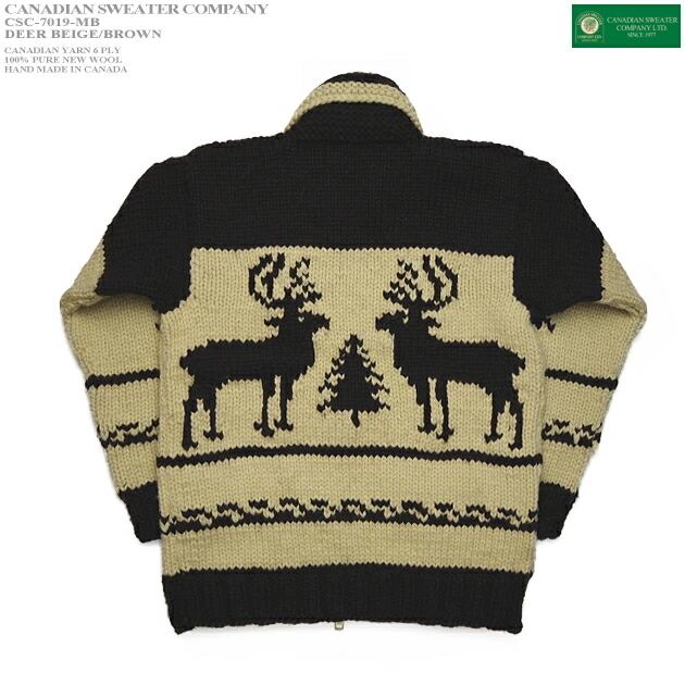 カウチンセーター|カナディアンセーター カンパニー(Canadian Sweater Company)|カナダ製|CSC-7019MB DEER(大角鹿/トナカイ)|ベージュ/ブラウン|メンズ|ウール100%|ウール100%|YARN 6 PLY(6プライヤーン)6本撚り|フルオープン|ジップアップ(two-way Zipper)|大きいサイズ|長袖