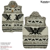 Kanata カウチンセーター(カウチンベスト)|カナタ社・カナダ製|KA41690 DOUBLE EAGLE VEST(ダブル・イーグル・ベスト)|ホワイト|メンズ|ウール100%(Wool100%)|6PLY WOOL(6本撚り)|フルオープン|YKK 2WAY[S] YKK製ジップアップ(10mm)|ノースリーブ