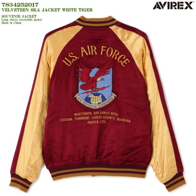 【スポット品】ヴェルヴェティーン スカジャケット|スカジャン|アビレックス|アヴィレックス|AVIREX|7834252017|VELVETEEN SKA JACKET WHITE TIGER|ホワイトタイガー|ブラック(別珍)×バーガンディ(サテン)|フルオープン|リバーシブル|メンズ 男性|長袖|秋冬モデル長袖|ヴェルヴェティーン|スカジャケット|メンズ|AVIREX|アヴィレックス|大人の遊び着|スカジャン|スーベニアジャケット